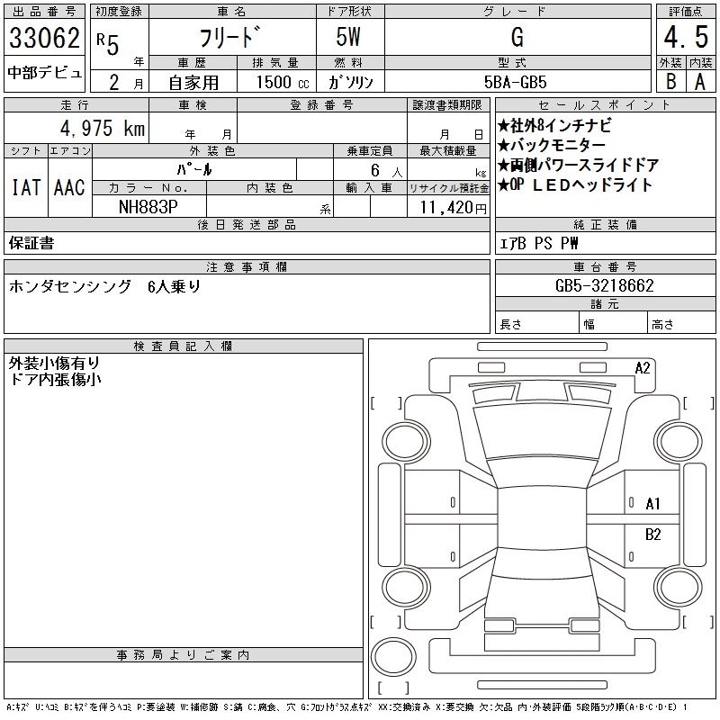 HONDA FREED 2023 г., лот № 33062