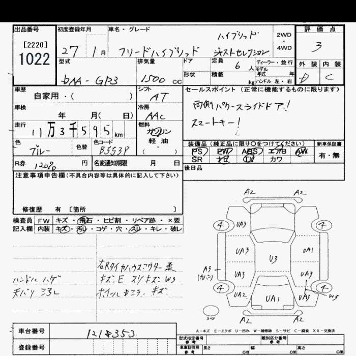 HONDA FREED 2015 г., лот № 1022