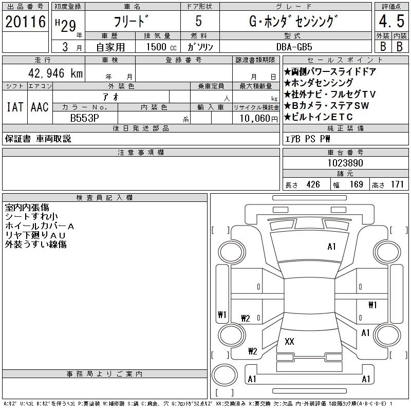 HONDA FREED 2017 г., лот № 20116