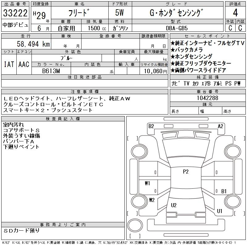 HONDA FREED 2017 г., лот № 33222