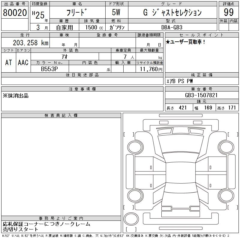 Год выпуска2013 Пробег 203 000 км КузовGB3 КомплектацияG JUST SELECTION