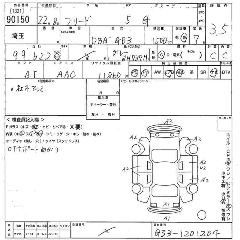 Статус выставлен на аукцион Лот 90150 Аукцион MIRIVE Saitama Дата аукциона 11.03.2026