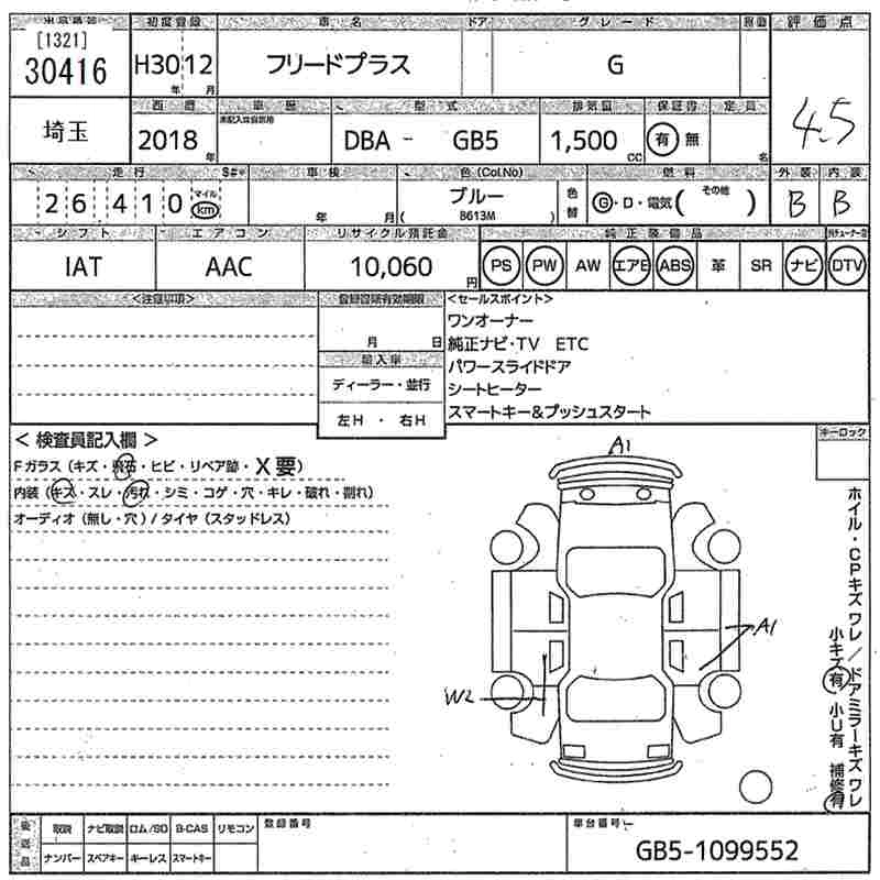 HONDA FREED+ 2018 г., лот № 30416