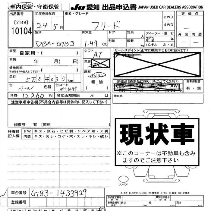 Статус выставлен на аукцион Лот 10104 Аукцион JU Aichi Дата аукциона 12.03.2026