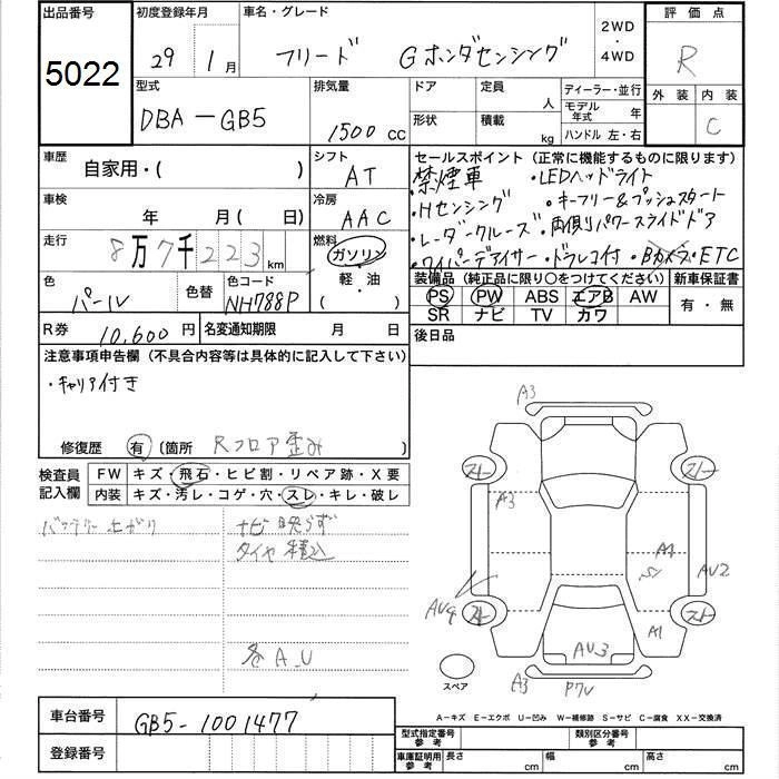 HONDA FREED 2017 г., лот № 5022