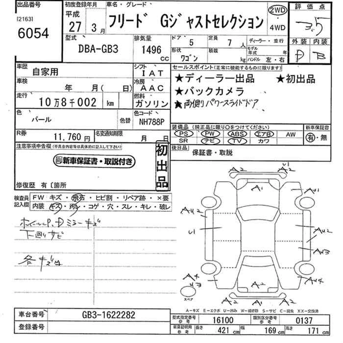 HONDA FREED 2015 г., лот № 6054