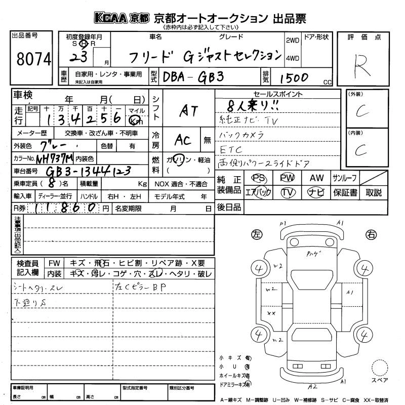 HONDA FREED 2011 г., лот № 8074