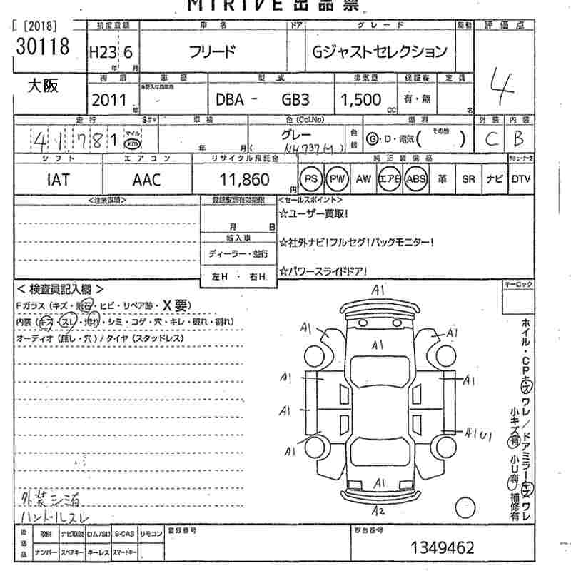 HONDA FREED 2011 г., лот № 30118