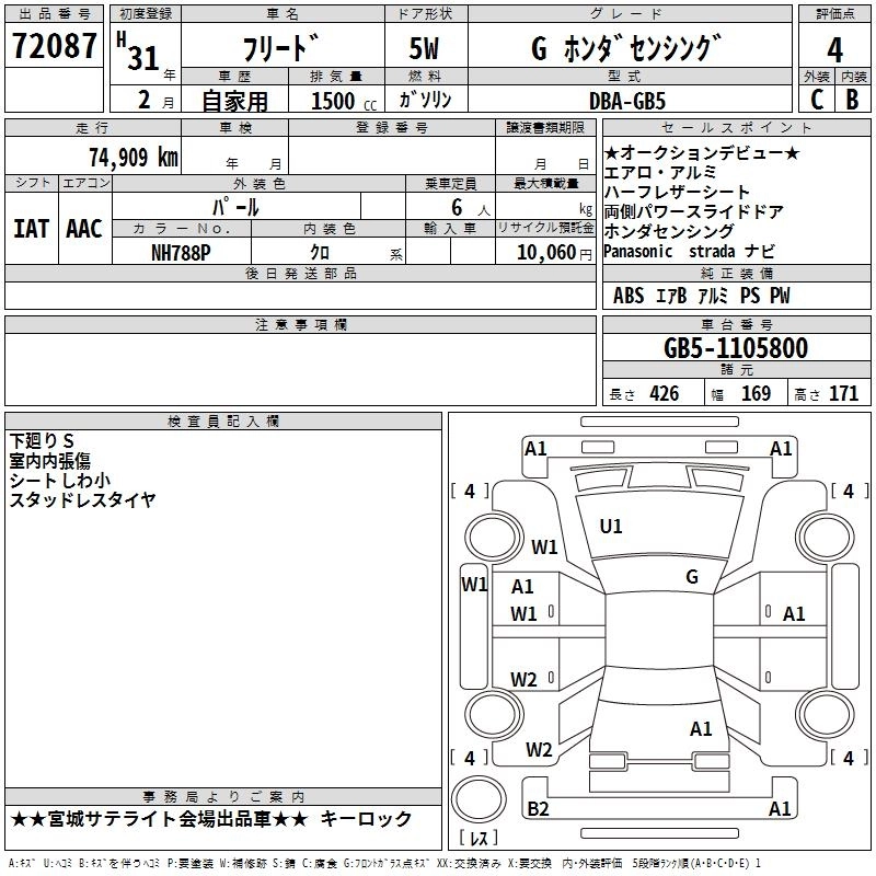 HONDA FREED 2019 г., лот № 72087