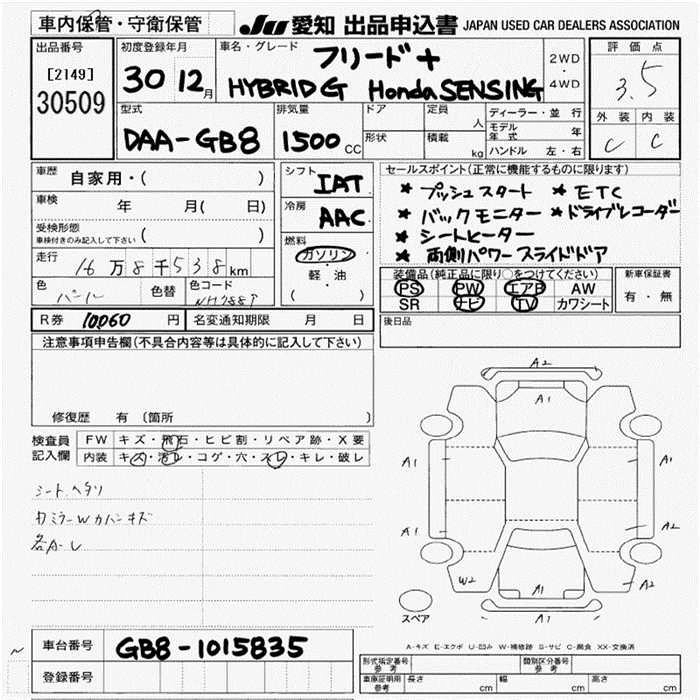 HONDA FREED+ 2018 г., лот № 30509