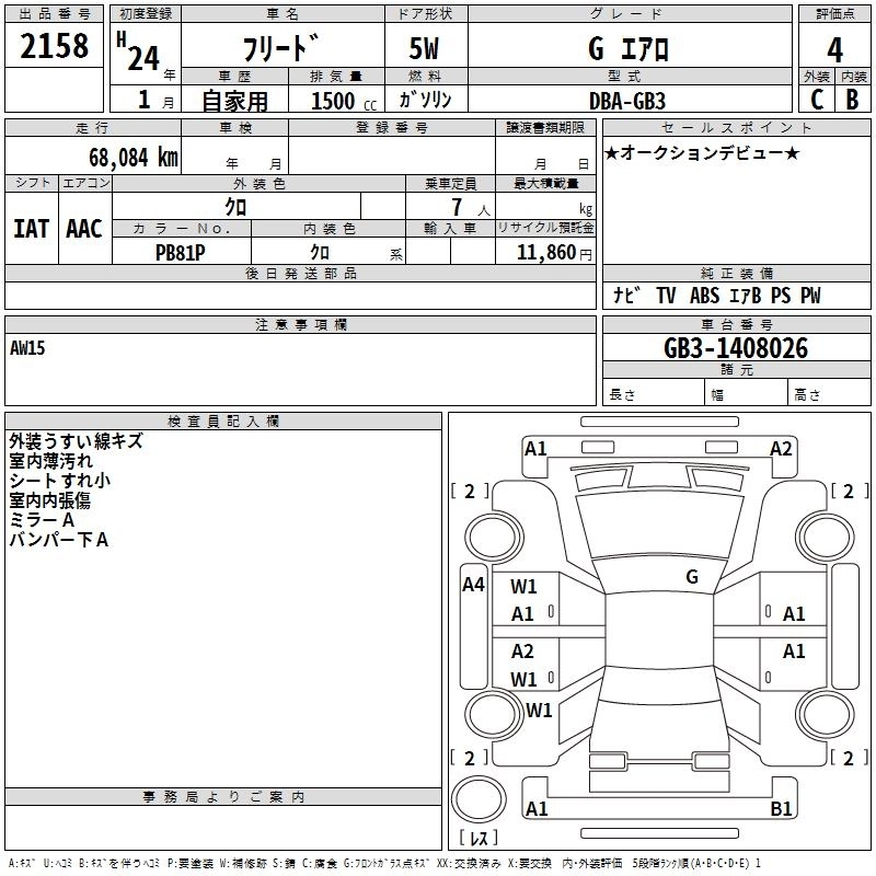 HONDA FREED 2012 г., лот № 2158