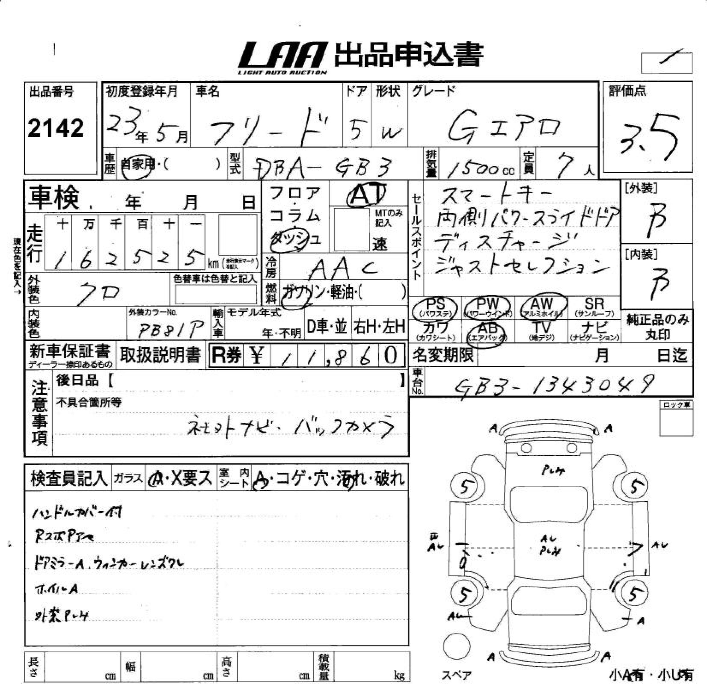 HONDA FREED 2011 г., лот № 2142