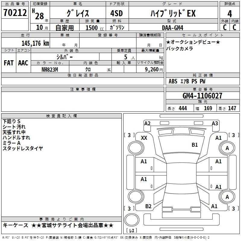 HONDA GRACE 2016 г., лот № 70212