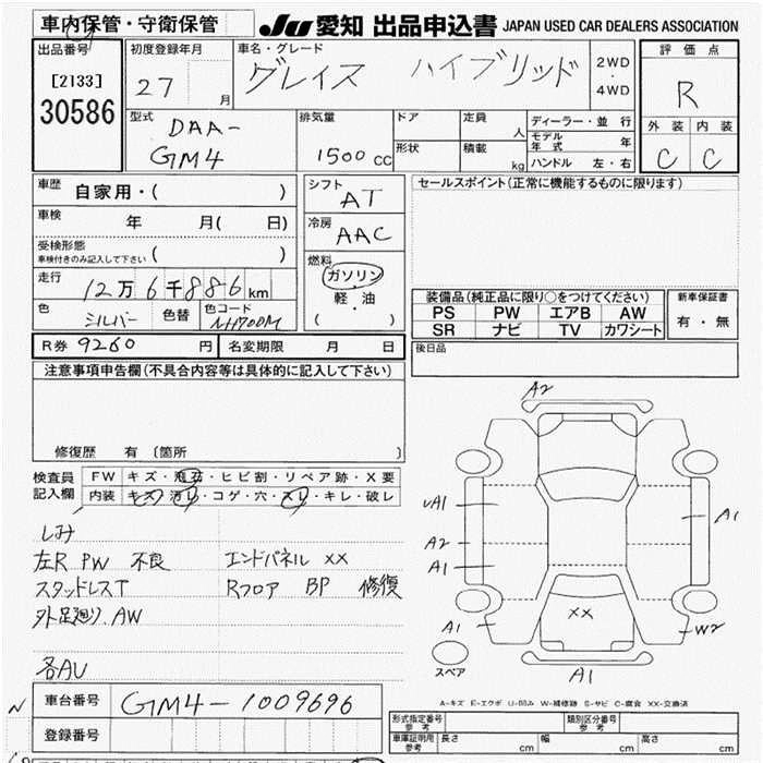 HONDA GRACE 2015 г., лот № 30586