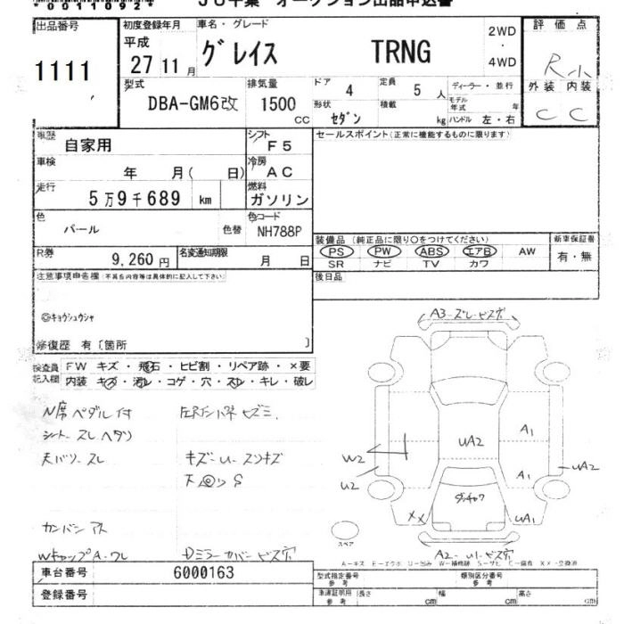 HONDA GRACE 2015 г., лот № 1111