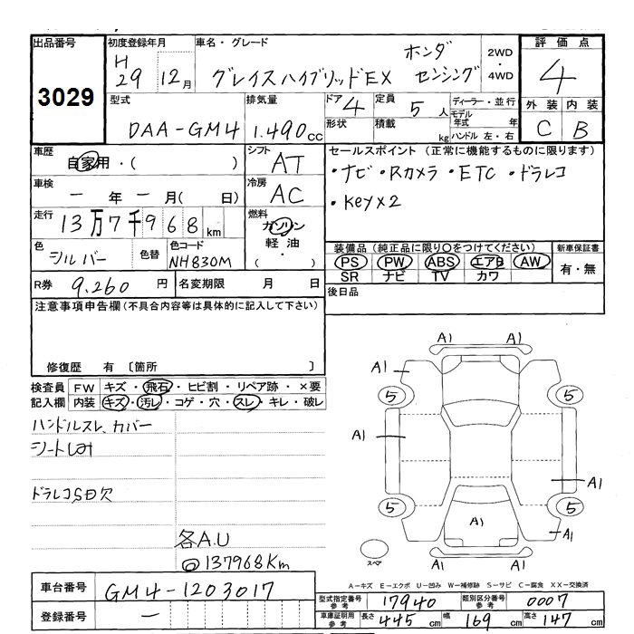 HONDA GRACE 2017 г., лот № 3029