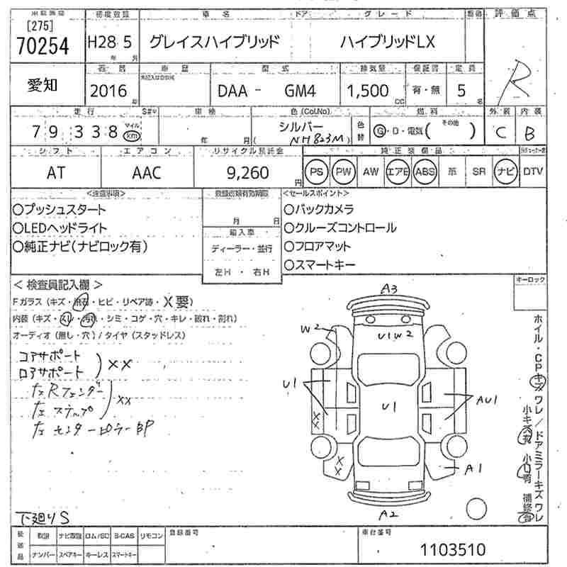 HONDA GRACE 2016 г., лот № 70254