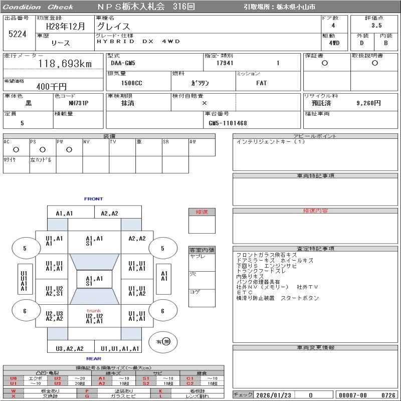 Статус выставлен на аукцион Лот 5224 Аукцион NPS Tochigi Дата аукциона 10.03.2026