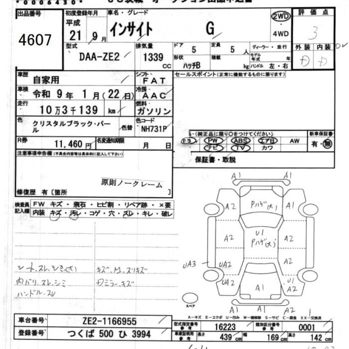 HONDA INSIGHT 2009 г., лот № 4607