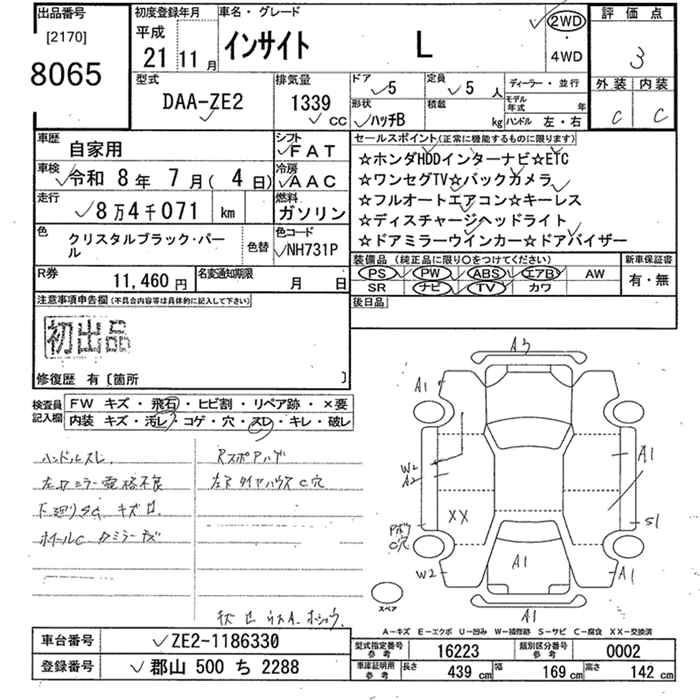 HONDA INSIGHT 2009 г., лот № 8065