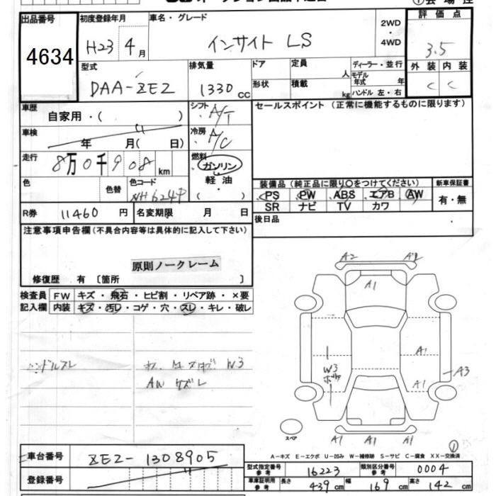 HONDA INSIGHT 2011 г., лот № 4634