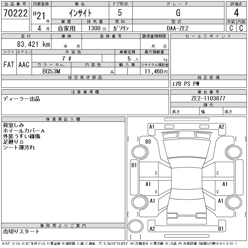 Статус продан Лот 70222 Аукцион CAA Gifu Дата аукциона 10.03.2026