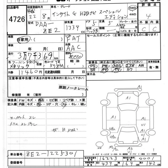 HONDA INSIGHT 2010 г., лот № 4726