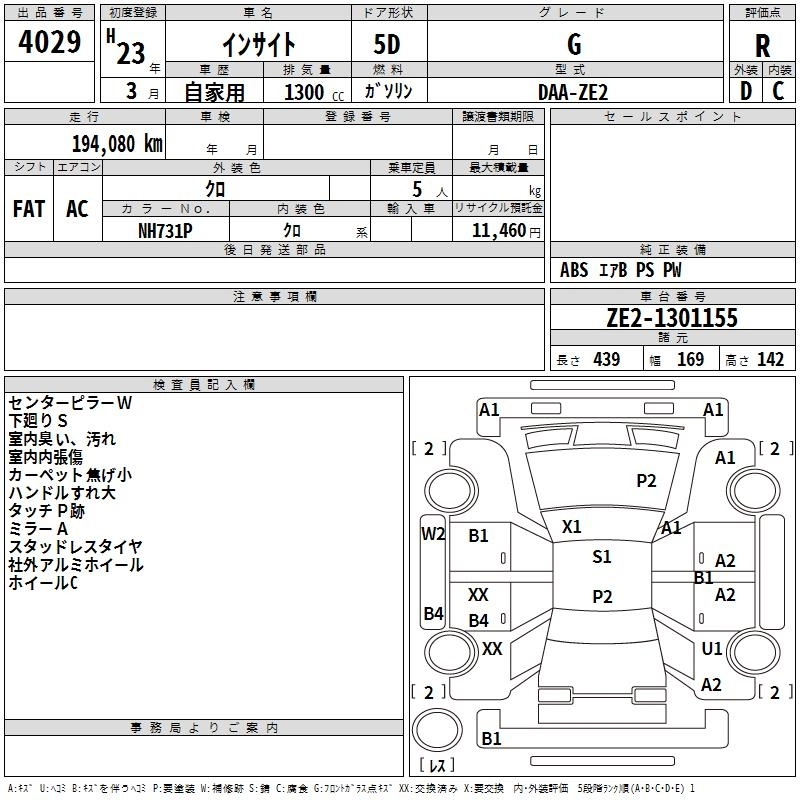HONDA INSIGHT 2011 г., лот № 4029
