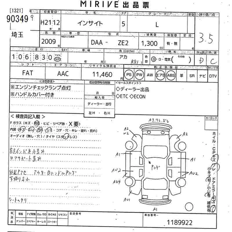 HONDA INSIGHT 2009 г., лот № 90349