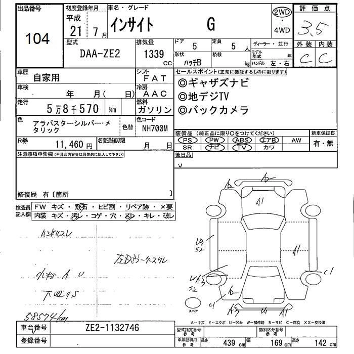 HONDA INSIGHT 2009 г., лот № 104