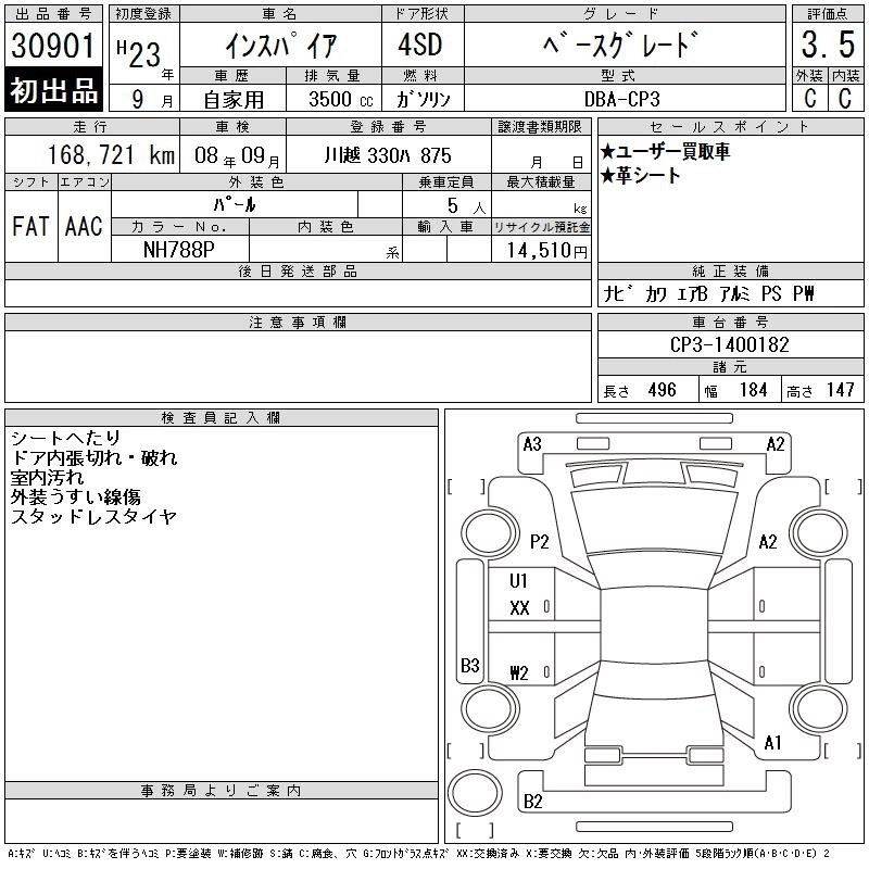 HONDA INSPIRE 2011 г., лот № 30901