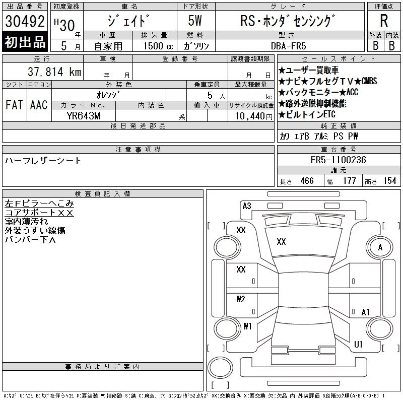 HONDA JADE 2018 г., лот № 30492