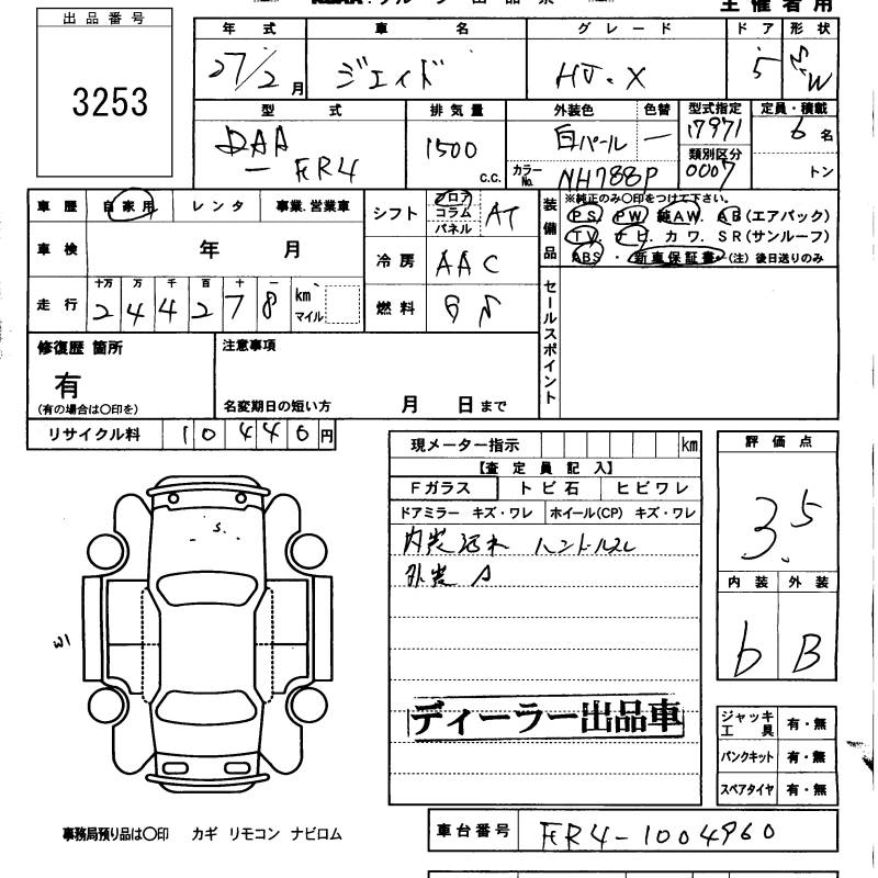 Статус продан Лот 3253 Аукцион KCAA M Kyushu Дата аукциона 12.11.2025