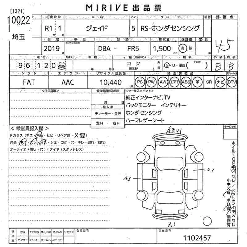 Статус выставлен на аукцион Лот 10022 Аукцион MIRIVE Saitama Дата аукциона 11.03.2026