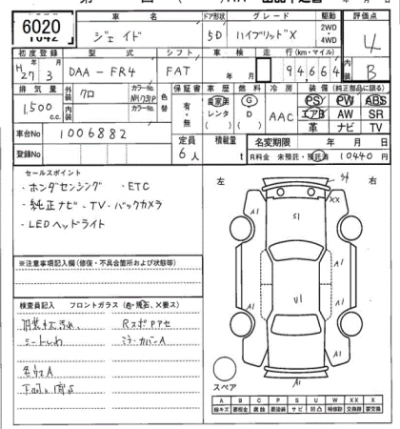 HONDA JADE 2015 г., лот № 6020