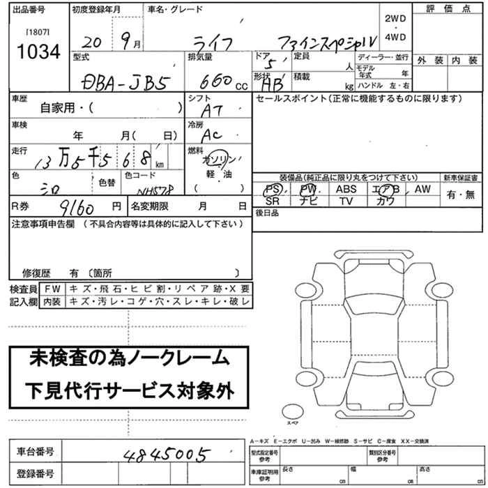 Стартовая цена авто на аукционе 0 ¥