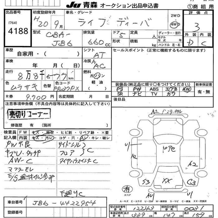 Статус выставлен на аукцион Лот 4188 Аукцион JU Aomori Дата аукциона 04.11.2025