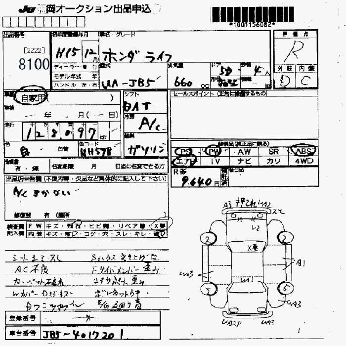 Статус продан Лот 8100 Аукцион JU Fukuoka Дата аукциона 07.11.2025