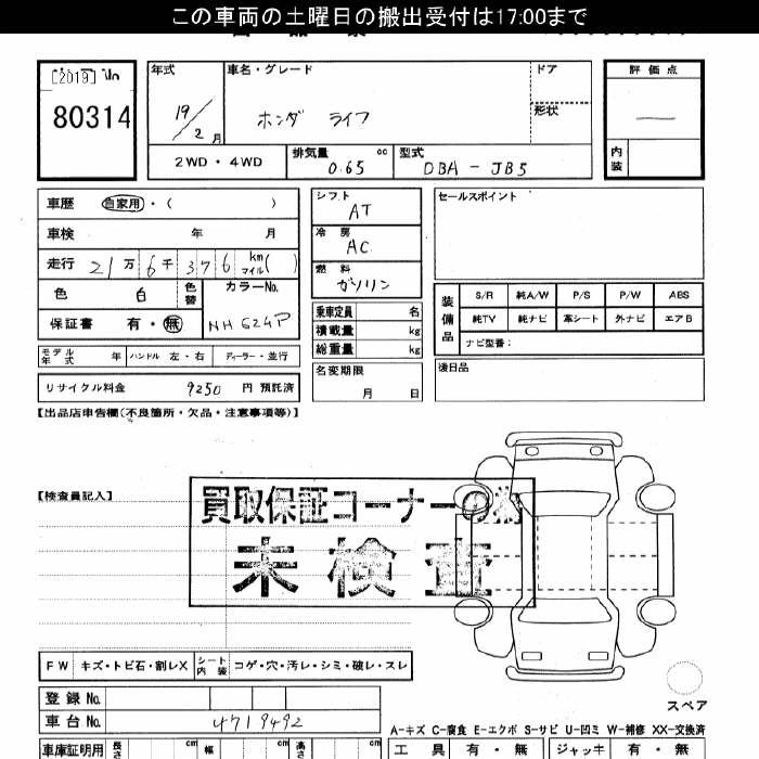 Статус выставлен на аукцион Лот 80314 Аукцион JU Gifu Дата аукциона 08.11.2025