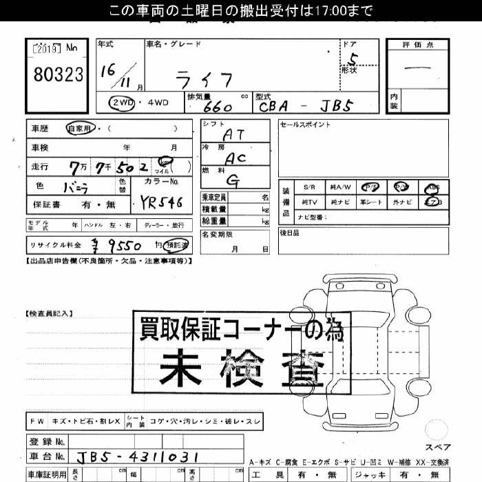 Статус выставлен на аукцион Лот 80323 Аукцион JU Gifu Дата аукциона 08.11.2025