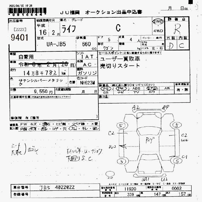 Статус не продан Лот 9401 Аукцион JU Fukuoka Дата аукциона 14.11.2025