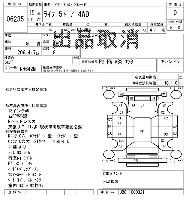 Статус не продан Лот 6235 Аукцион ARAI Sendai Дата аукциона 14.11.2025