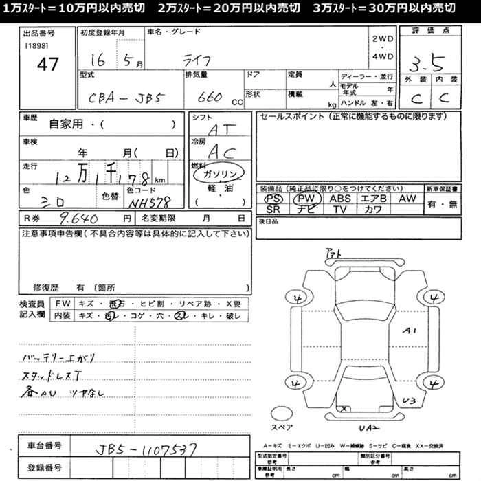 Стартовая цена авто на аукционе 10 000 ¥