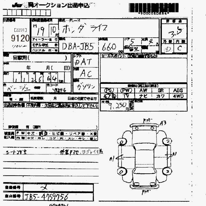 Статус не продан Лот 9120 Аукцион JU Fukuoka Дата аукциона 23.01.2026