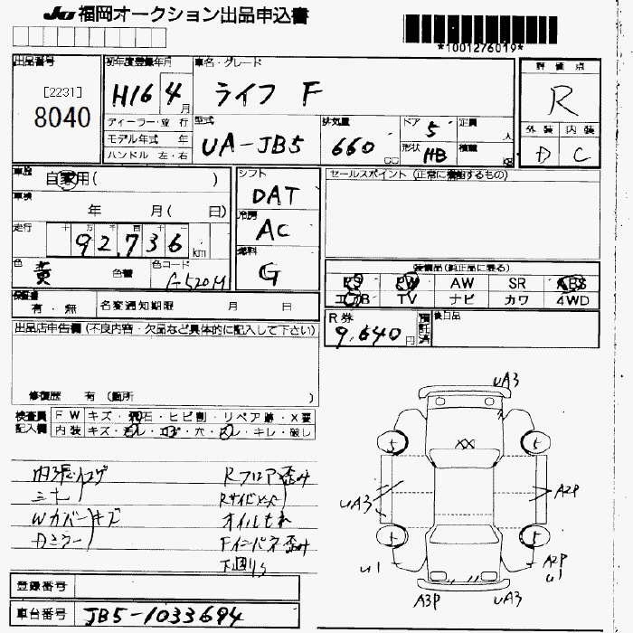 Статус продан Лот 8040 Аукцион JU Fukuoka Дата аукциона 23.01.2026