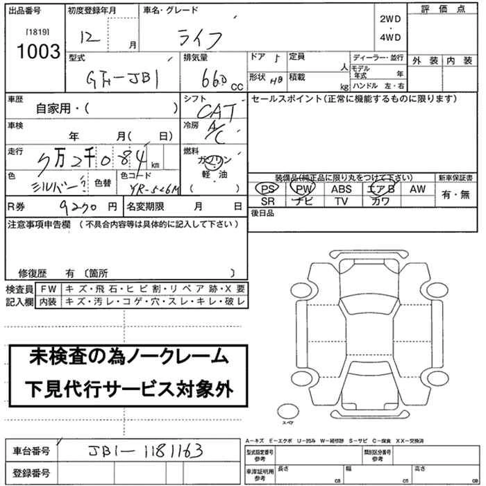 Стартовая цена авто на аукционе 0 ¥