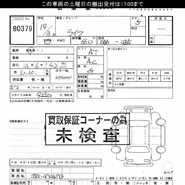 Статус выставлен на аукцион Лот 80379 Аукцион JU Gifu Дата аукциона 24.01.2026