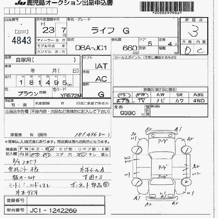 Статус не продан Лот 4843 Аукцион JU Fukuoka Дата аукциона 23.01.2026