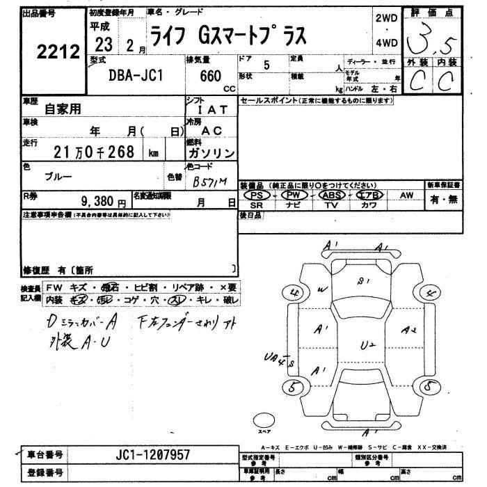 HONDA LIFE 2011 г., лот № 2212