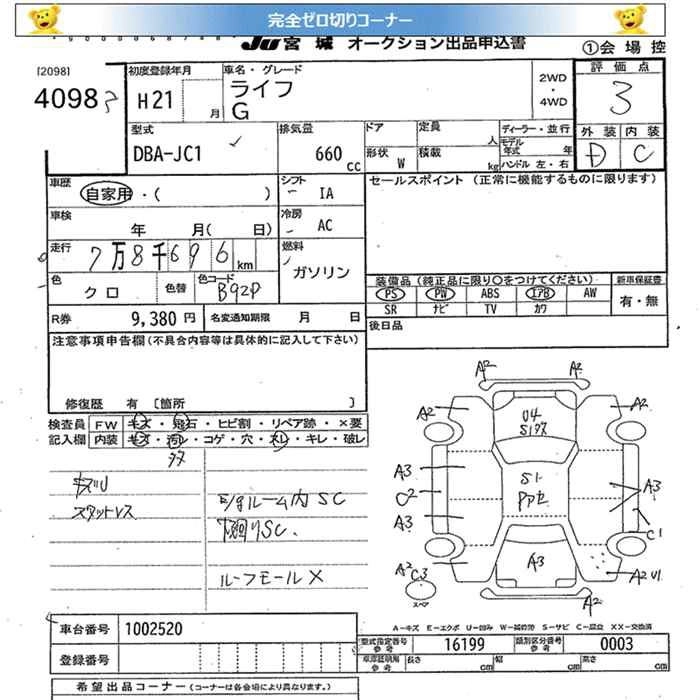 Стартовая цена авто на аукционе 0 ¥